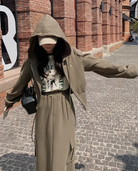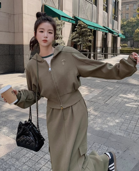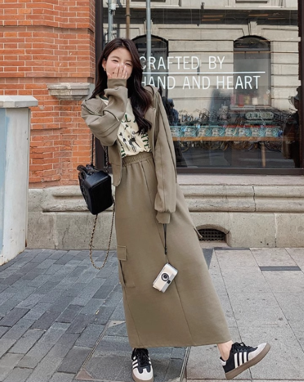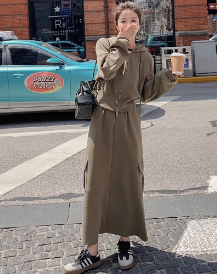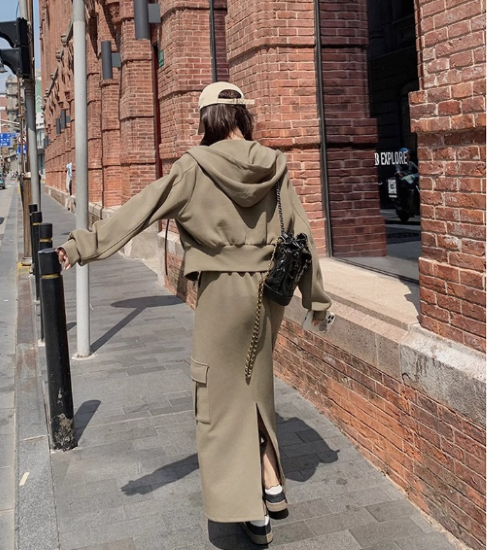 セットアップ レディース 上下セット 2点 ツーピース パーカー フーディー 長袖 フロントジッパー ショート丈 ロングスカート ハイウエスト シンプル 無地 カジュアル お出かけ おしゃれ 女性