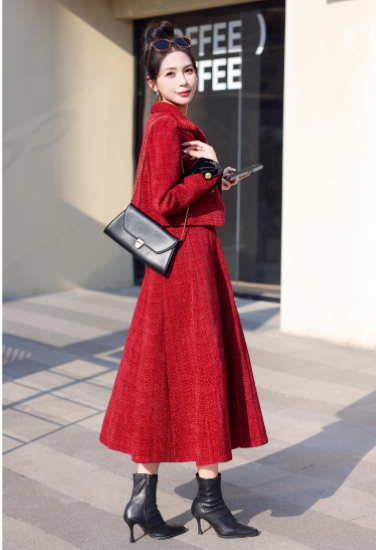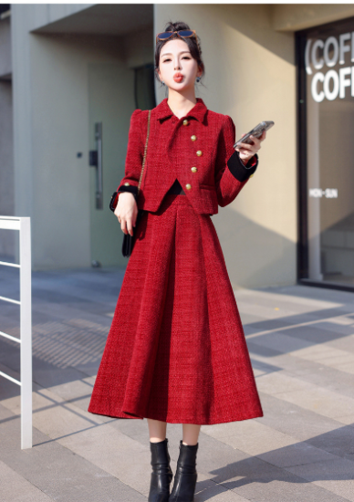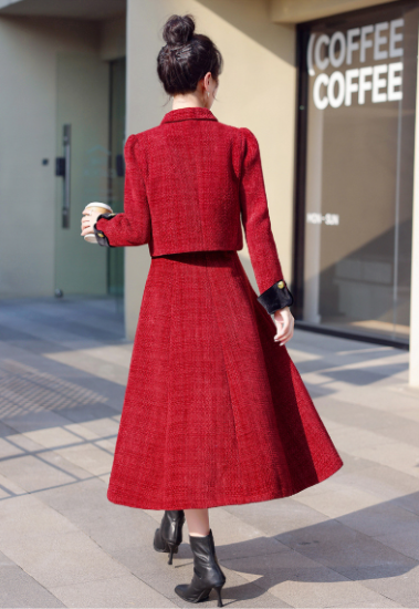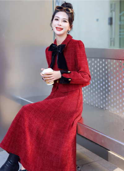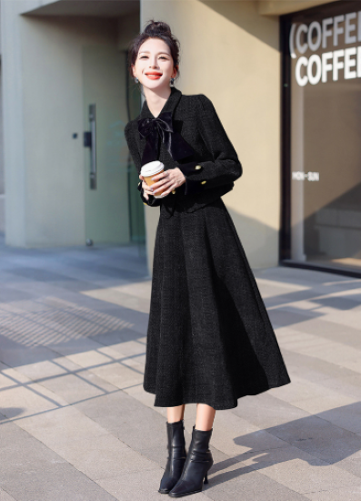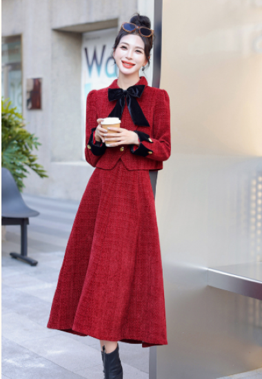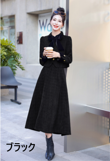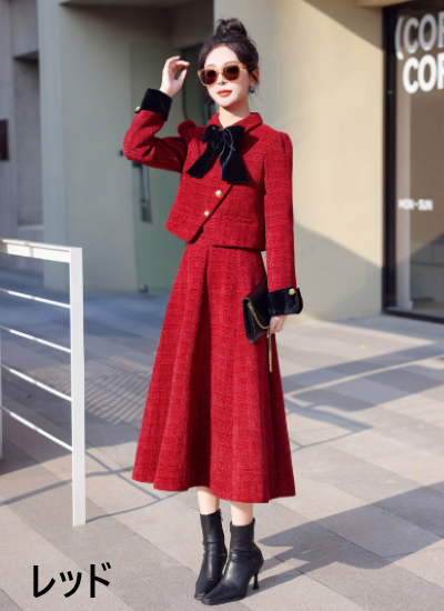 セットアップ レディース 上下セット 2点 ツーピース スカートスーツ ジャケット 長袖 リボン ミモレ丈スカート Aライン 上品 レトロ クラシカル きれいめ エレガント お呼ばれ フォーマル 女性