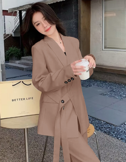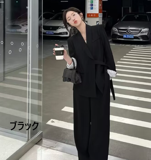 セットアップ レディース 上下セット 2点 ツーピース パンツスーツ ジャケット ラップデザイン ロングパンツ スタイリッシュ きれいめ フォーマル お呼ばれ オフィス OL 通勤 パーティー 女性