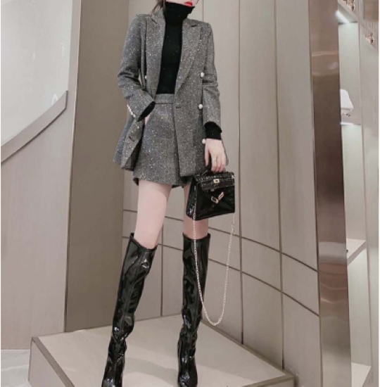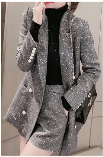 セットアップ レディース 上下セット 2点 ツーピース パンツスーツ ジャケット 長袖 スーツ襟 羽織 ショートパンツ ハイウエスト スタイリッシュ カジュアル お出かけ おしゃれ きれいめ 女性