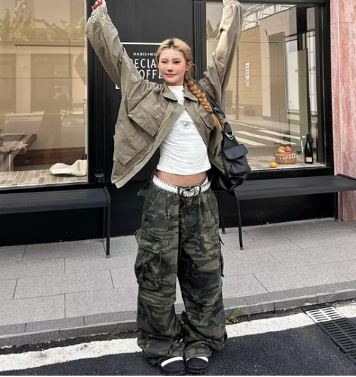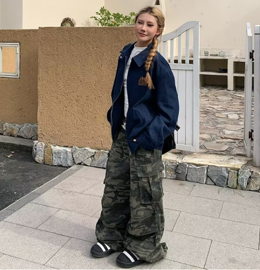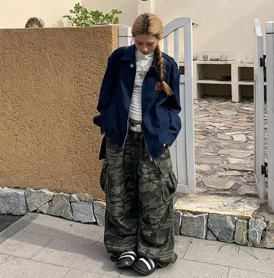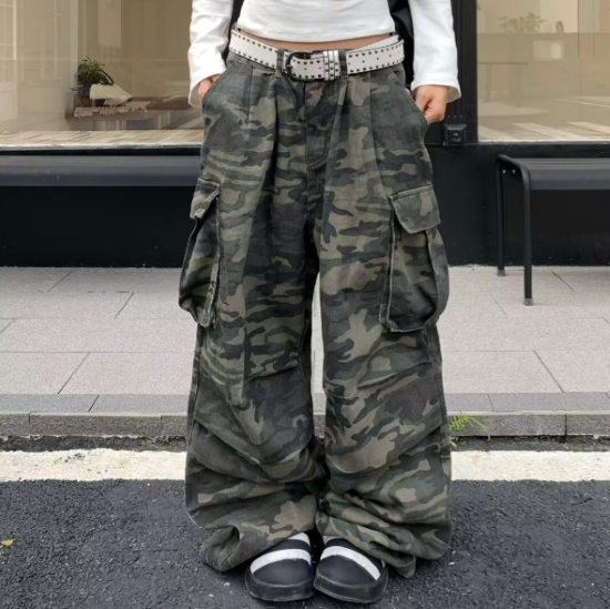パンツ レディース ボトムス ワイドパンツ ロングパンツ 長ズボン ゆったり 迷彩柄 カモフラージュ柄 カーゴポケット ルーズ カジュアル お出かけ おしゃれ ハイウエスト ファッション コットン
