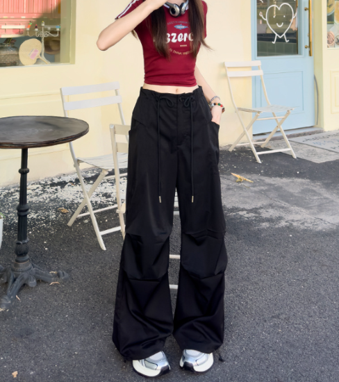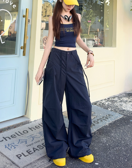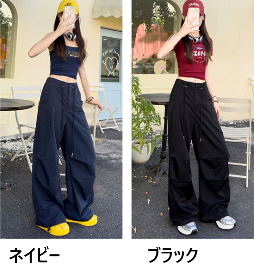 パンツ レディース ボトムス ワイドパンツ ハイウエスト シンプル 無地 ゆったり ルーズ 長ズボン ロングパンツ ポケット ウエストドローストリング カジュアル お出かけ おしゃれ ファッション