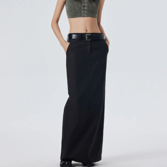 スカート レディース ボトムス ロング丈 マキシ丈 バックスリット 黒 ブラック シンプル 無地 ベルトループ 大きいサイズ カジュアル お出かけ おしゃれ きれいめ ポケット モード ファッション