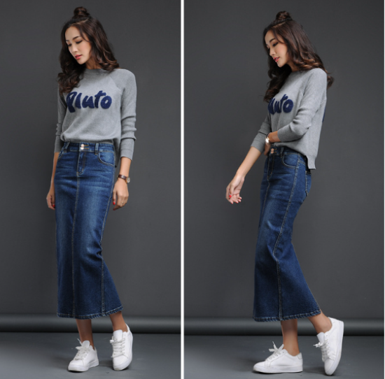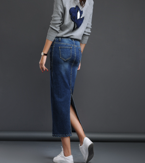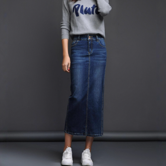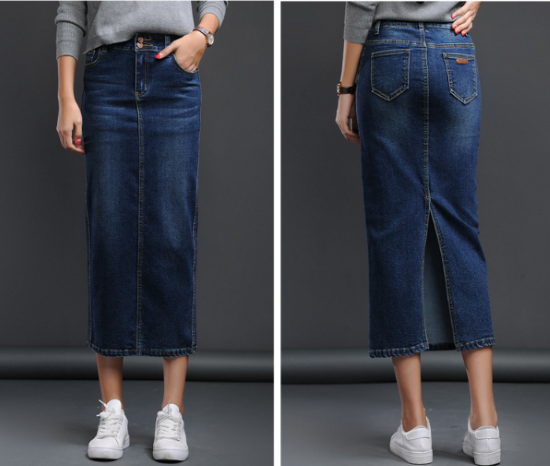 スカート レディース ボトムス デニム ハイウエスト ミモレ丈 バックスリット シンプル 無地 ストレッチ スリム カジュアル お出かけ おしゃれ ポケット 大きいサイズ 女性 ファッション デイリー
