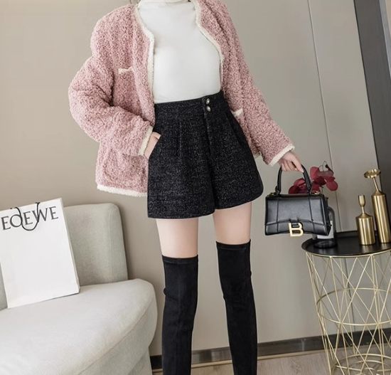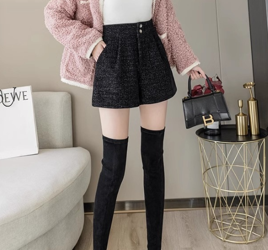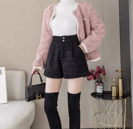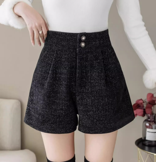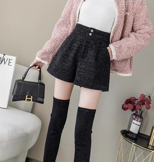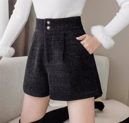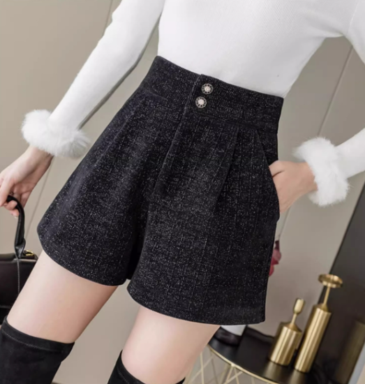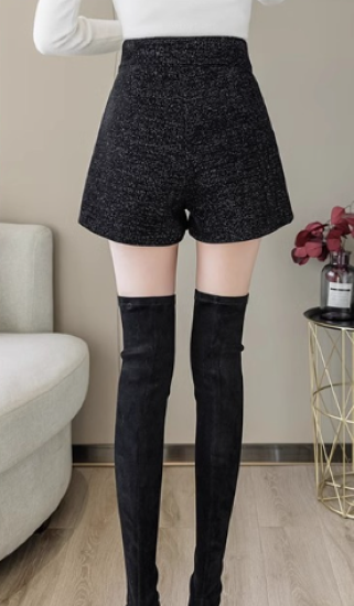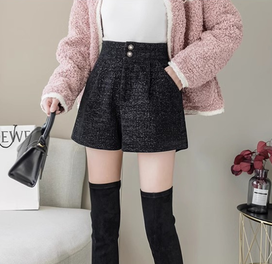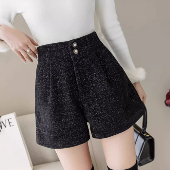 ショートパンツ レディース ボトムス ハイウエスト 美脚 脚長 ボタン 黒 ブラック カジュアル お出かけ おしゃれ きれいめ ショート丈 キュロット ポケット Aライン 女性 ファッション デイリー