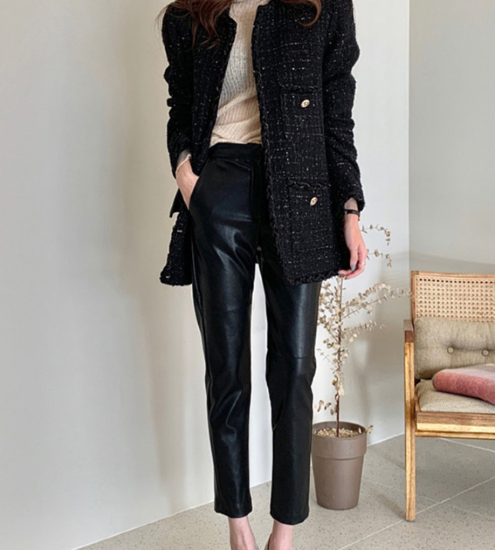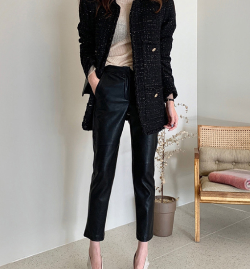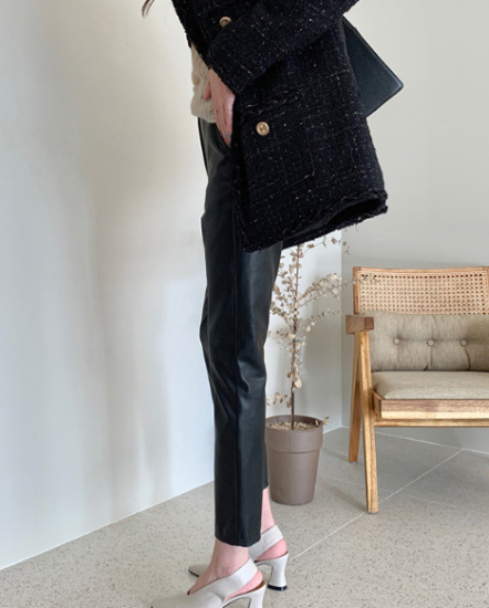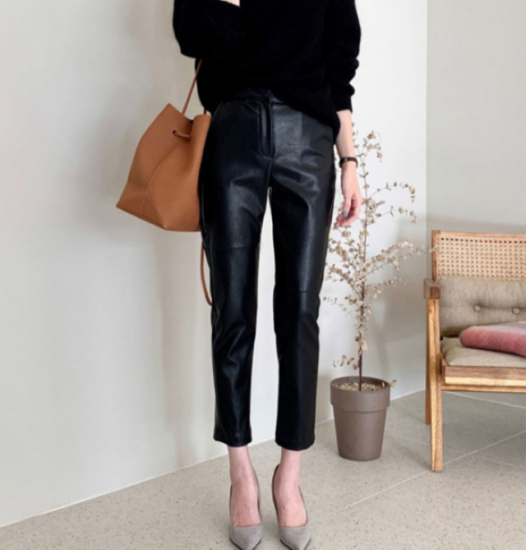 パンツ レディース ボトムス 長ズボン PUレザー 9分丈 8分丈 スリム クロップドパンツ スタイリッシュ クール タイウエスト 美脚 脚長 きれいめ シンプル 無地 カジュアル お出かけ おしゃれ