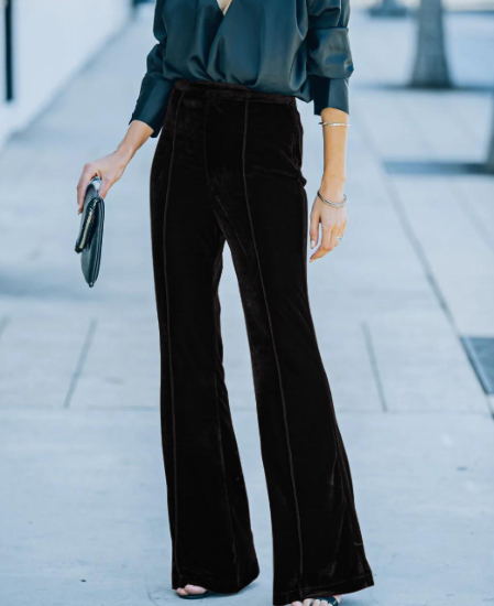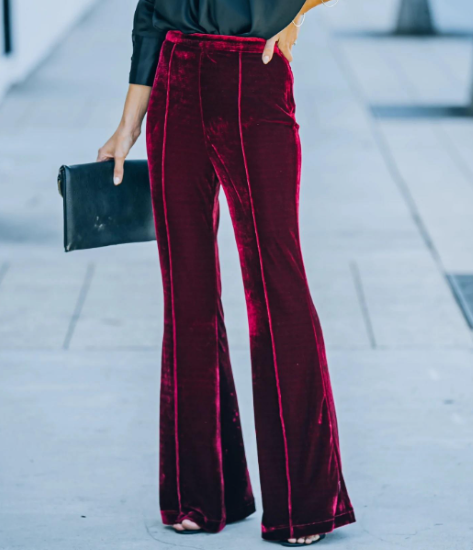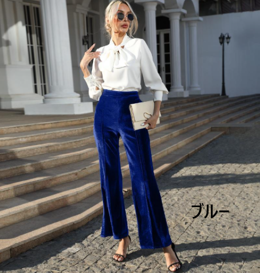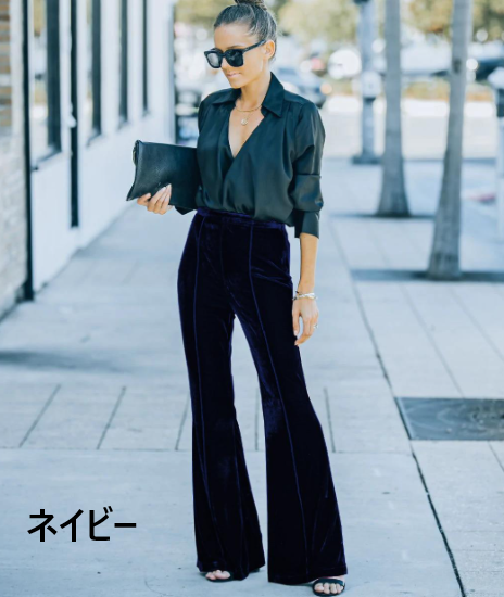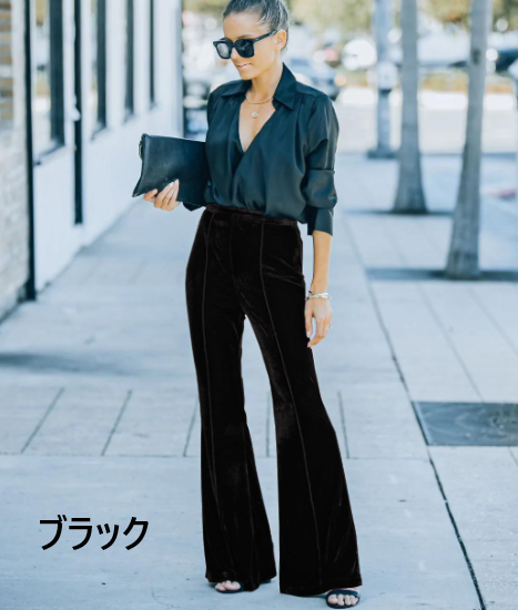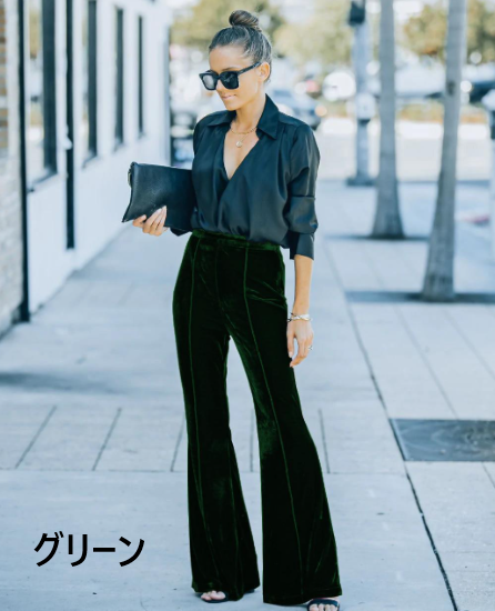 パンツ レディース ボトムス 長ズボン ベルベット ベロア フレアシルエット ブーツカット ハイウエスト シンプル 無地 カジュアル お出かけ おしゃれ きれいめ スタイリッシュ ロング ファッション