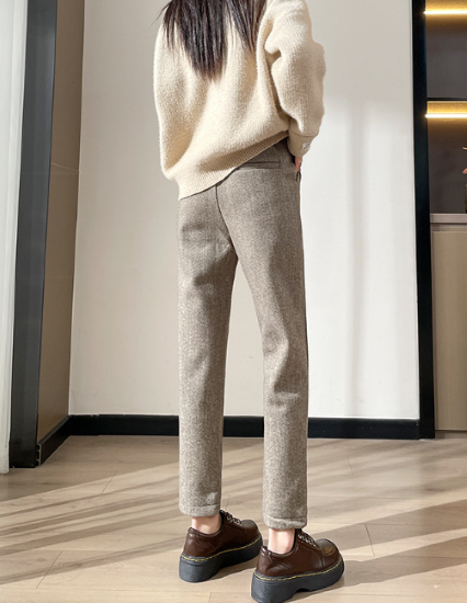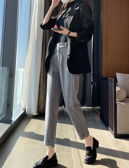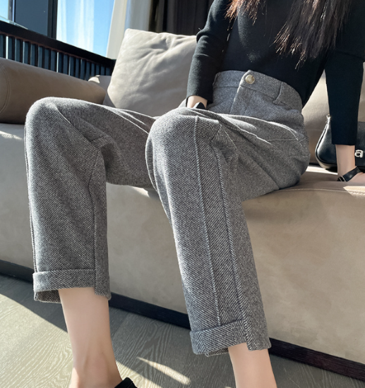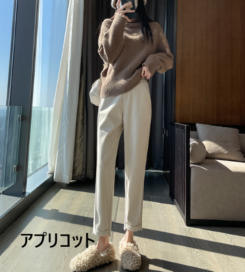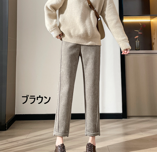 パンツ レディース ボトムス 長ズボン ロング丈 ハイウエスト ストレートシルエット シンプル 無地 秋冬 ボタン カジュアル お出かけ おしゃれ きれいめ ポケット 女性 ファッション デイリー