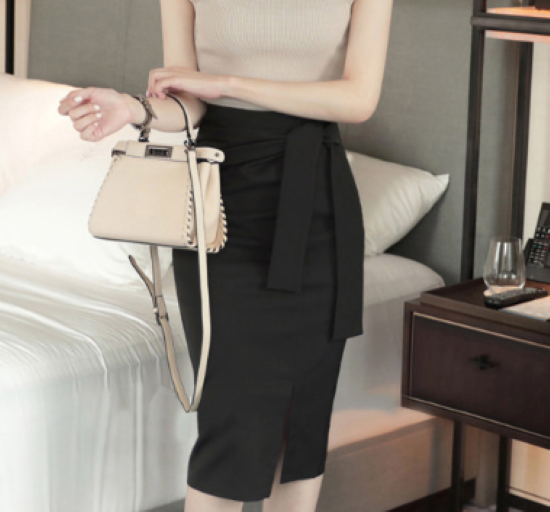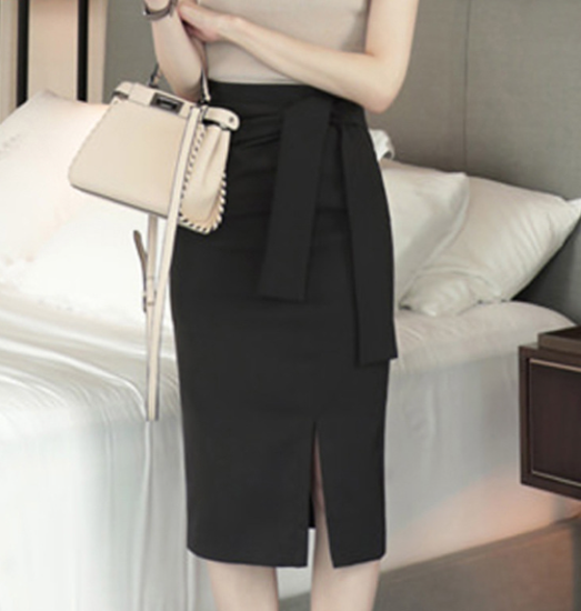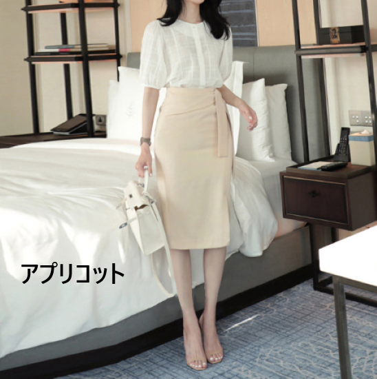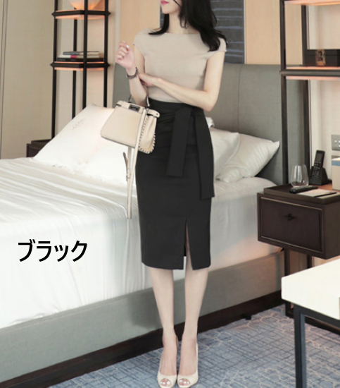 スカート レディース ボトムス 膝丈 ペンシルシルエット スリット サイドリボン シンプル 無地 ハイウエスト きれいめ 上品 オフィス フォーマル OL 通勤 カジュアル お出かけ おしゃれ 女性