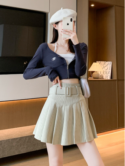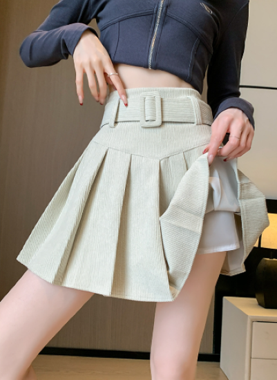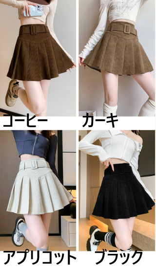 スカート レディース ボトムス ミニスカート ショート丈 プリーツ 美脚 脚長 ハイウエスト スタイルアップ Aラインシルエット コーデュロイ カジュアル お出かけ おしゃれ インナーパンツ付き