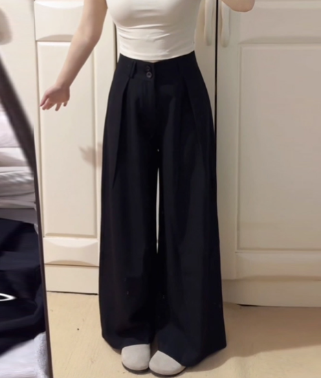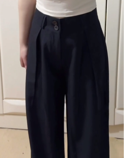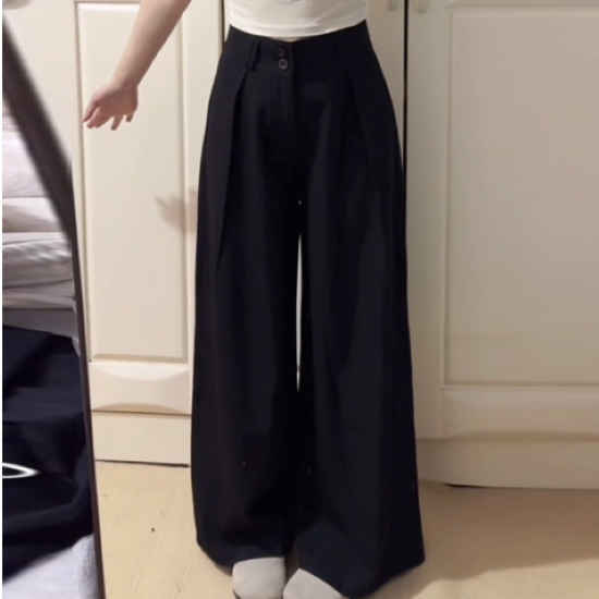 パンツ レディース ボトムス ロング ワイドシルエット ゆったり ルーズ シンプル 無地 ベルトループ ハイウエスト ダブルボタン カジュアル お出かけ おしゃれ きれいめ 大きいサイズ ブラック