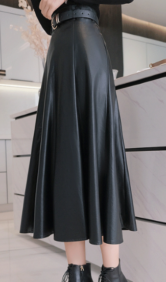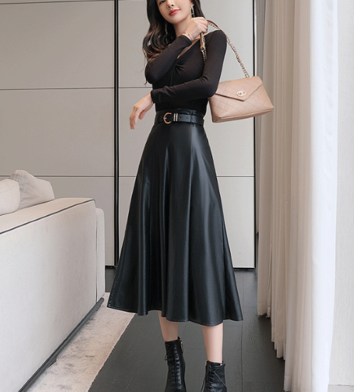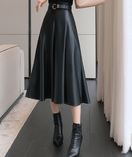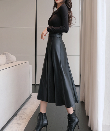 スカート レディース ボトムス ミモレ丈 ミディ丈 PUレザー Aラインシルエット ハイウエスト プリーツ モード シック シンプル 無地 黒 ブラック きれいめ カジュアル お出かけ おしゃれ 女性