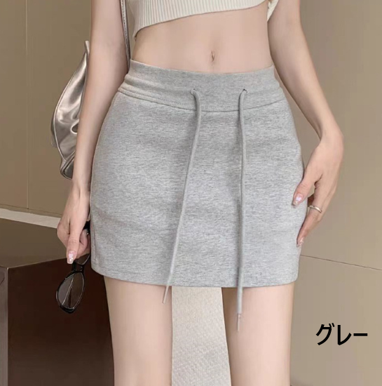 スカート レディース ボトムス ミニ丈 ショート丈 シンプル 無地 ハイウエスト 美脚 脚長 スタイルアップ ウエストドローストリング カジュアル お出かけ おしゃれ 女性 ファッション タイト