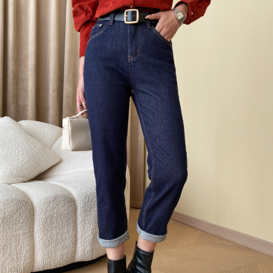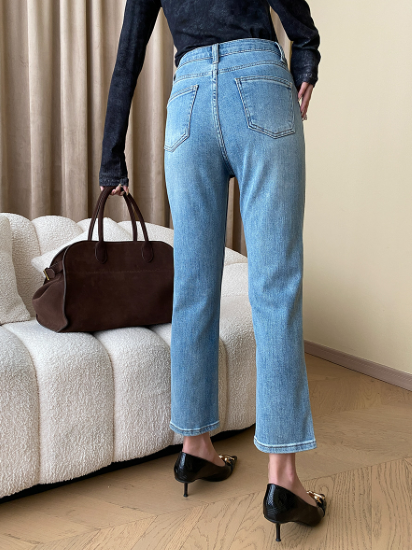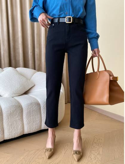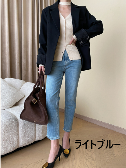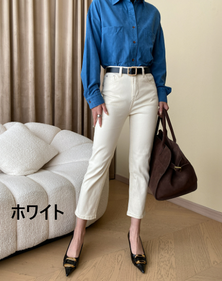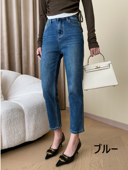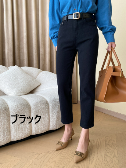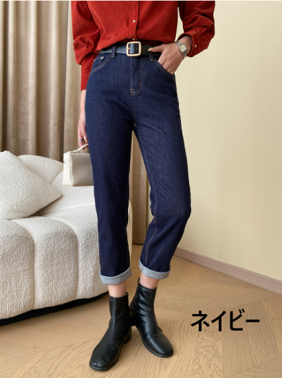 パンツ レディース ボトムス クロップド丈 9分丈 シンプル 無地 ハイウエスト ストレート デニム ジーパン Gパン ジーンズ カジュアル お出かけ おしゃれ きれいめ ジッパー ベルトループ 女性