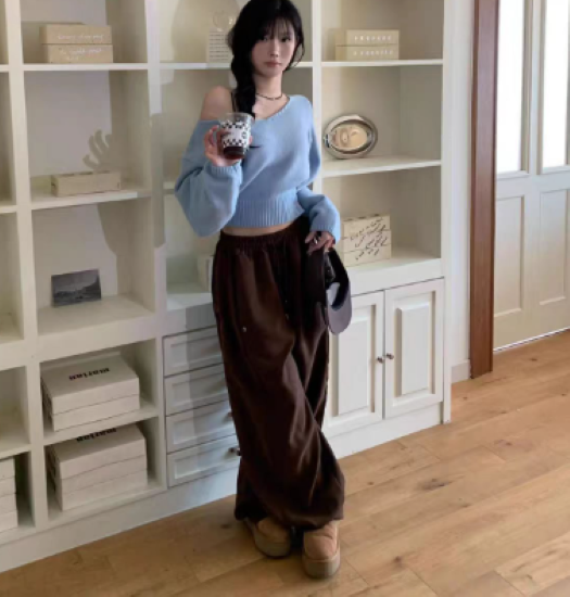 ニットセーター レディース トップス プルオーバー クロップド丈 ショート丈 長袖 Vネック 裾ボタン スタイルアップ ゆったり カジュアル お出かけ おしゃれ ウール混 シンプル 無地 ファッション
