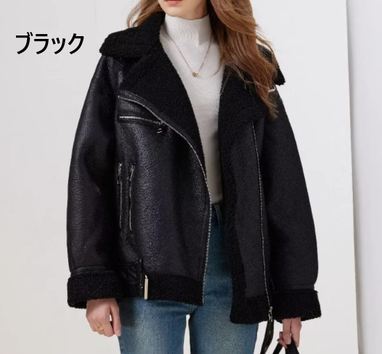 ジャケット レディース アウター 羽織 上着 PUレザー ボア 暖かい クール スタイリッシュ フロントジッパー ベルトデザイン 防寒 防風 カジュアル お出かけ おしゃれ 女性 ファッション 冬